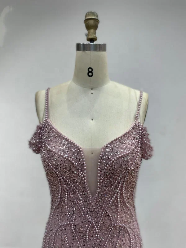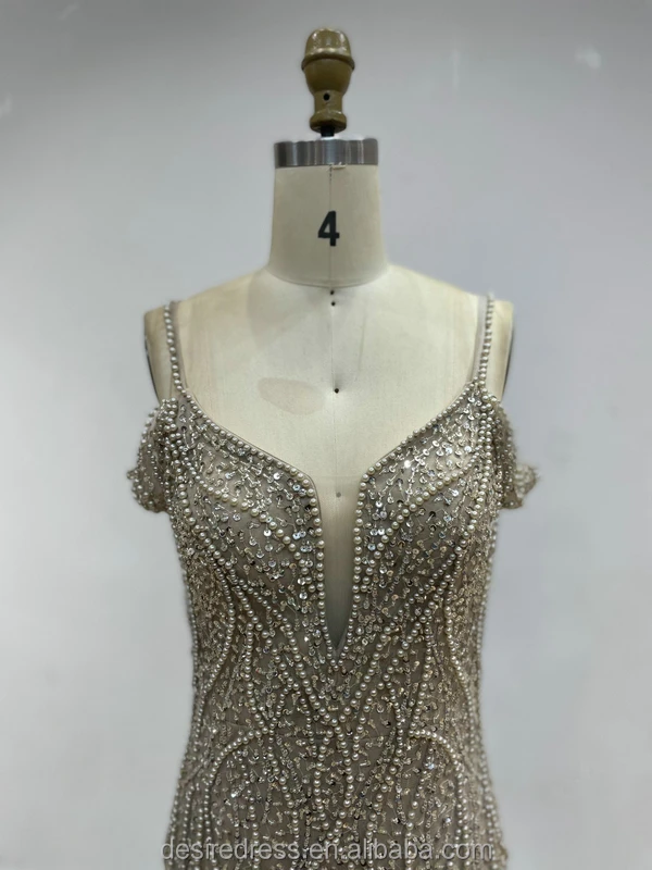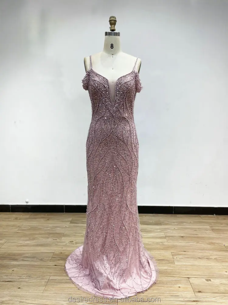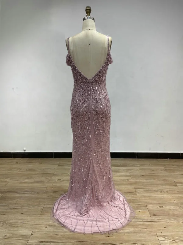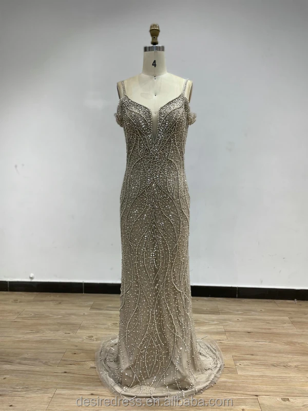 DKD028 Luxury Sexy Spaghetti Strap Beading Haute Couture Bride Wedding Evening Dress Backless Plus Size Evening Gowns for Women